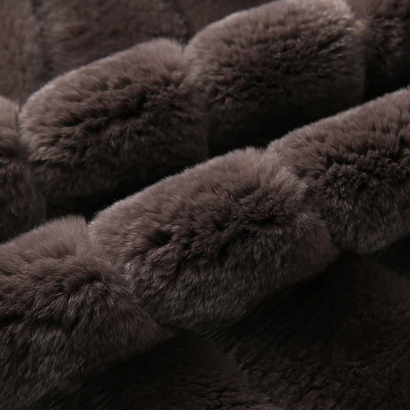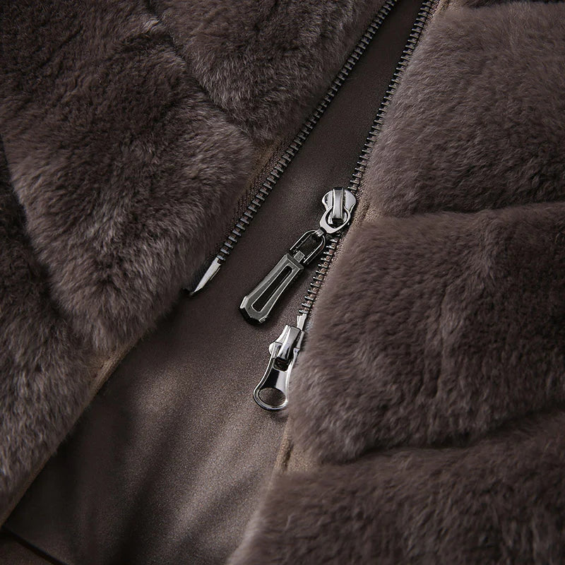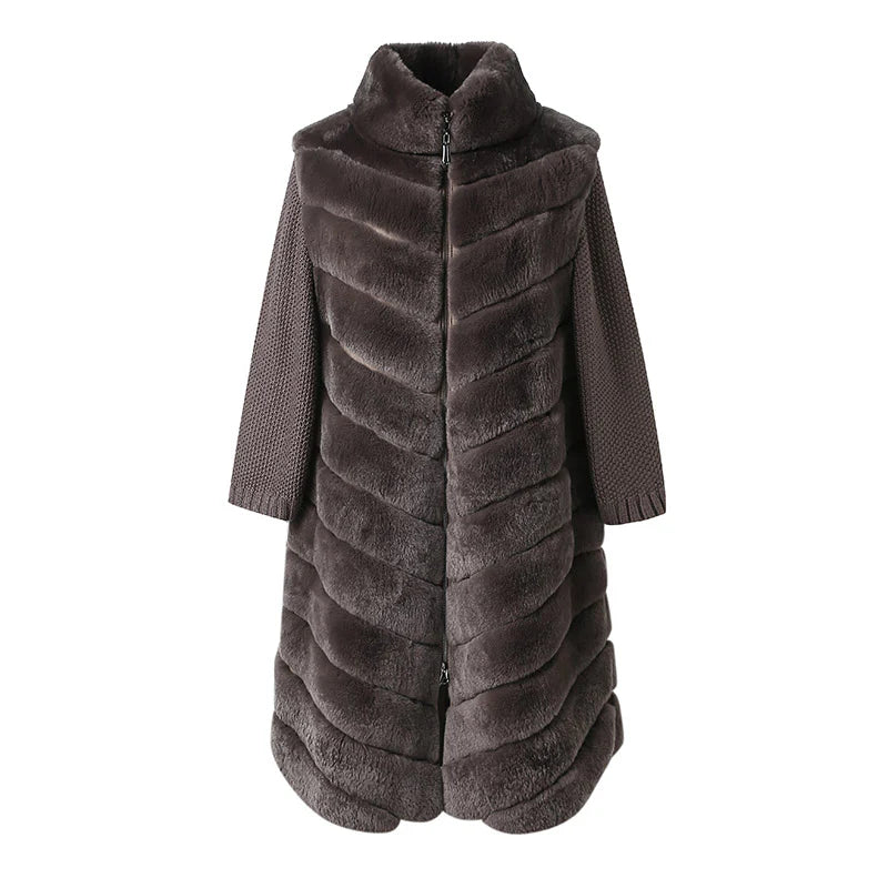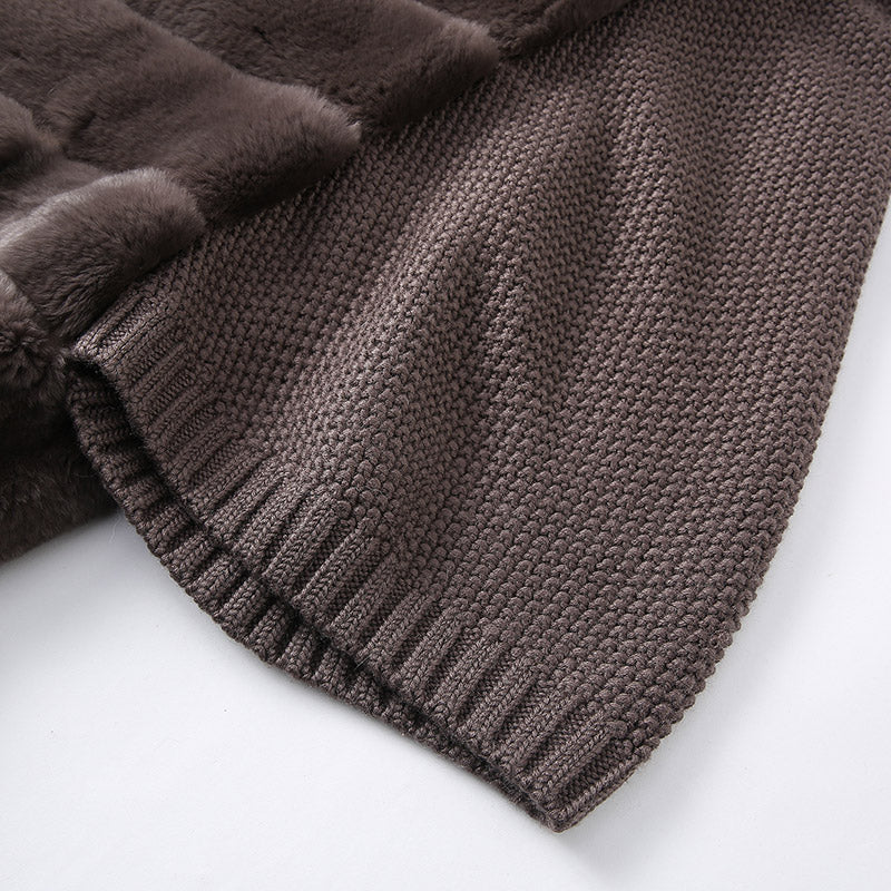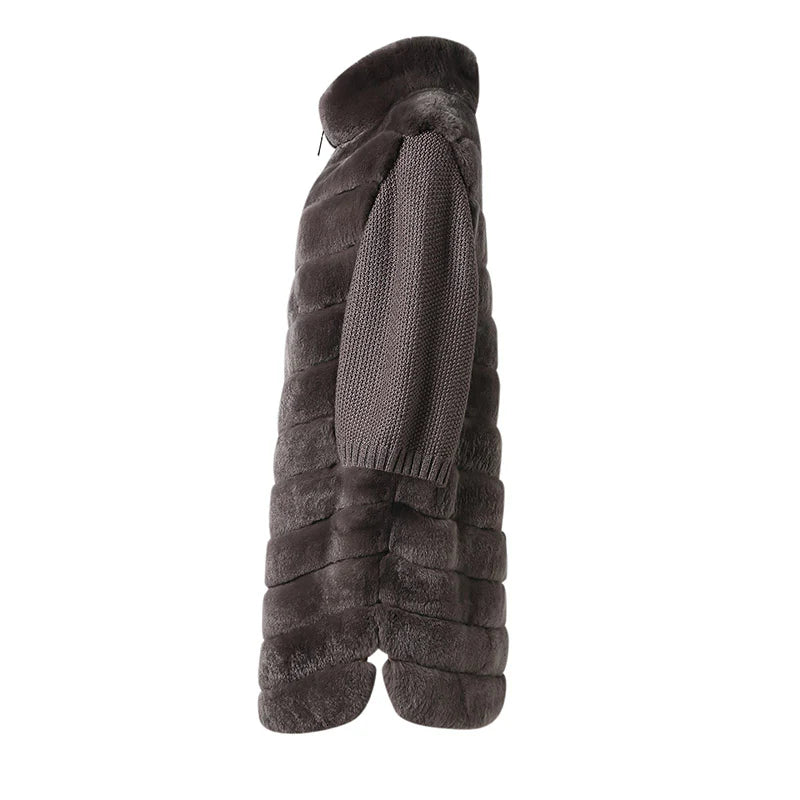 - Material: 100% real Rex rabbit fur (body), knit fabric (sleeves)
