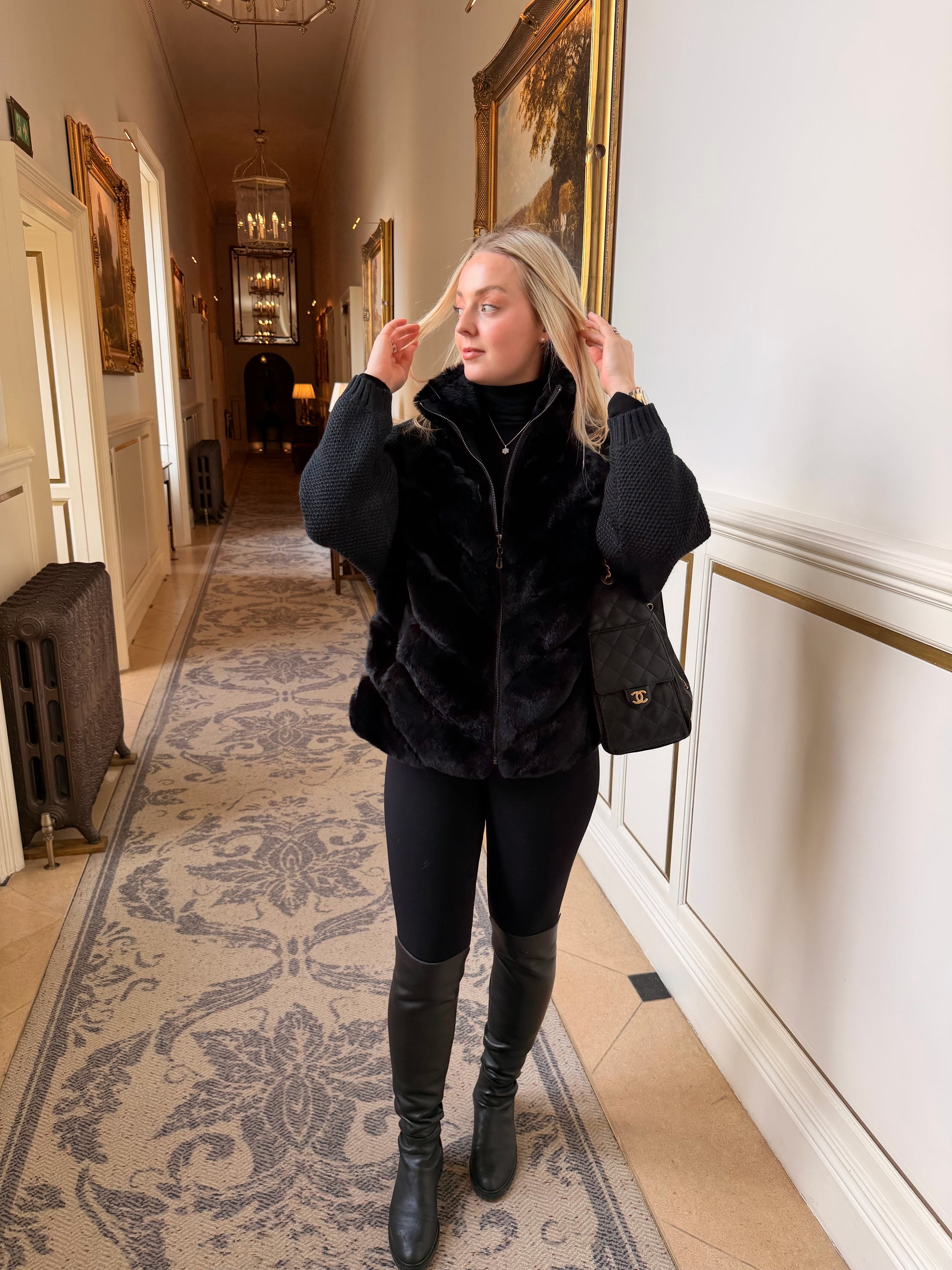 Wool knit sleeves for added texture and warmth